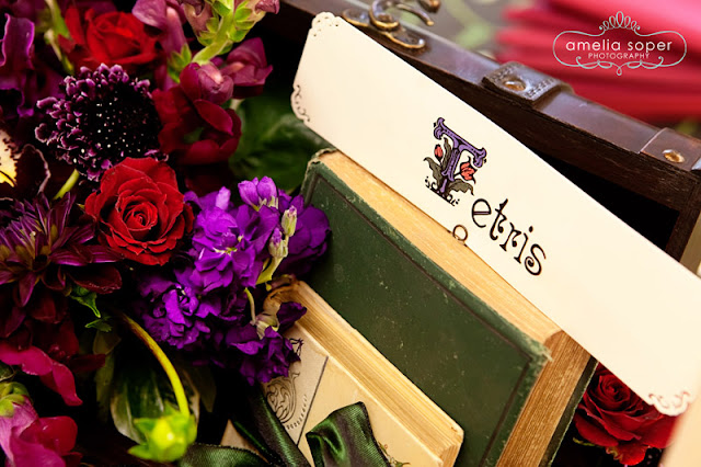 While all of these things were super unique and cool, my very favorite part was their wedding cake, another beautifully crafted masterpiece from Mike's Amazing Cakes. It was an open storybook topped with both of their likenesses, in full medieval costume, swords drawn on a fabulously dapper dragon in a top hat. Best wedding cake ever.